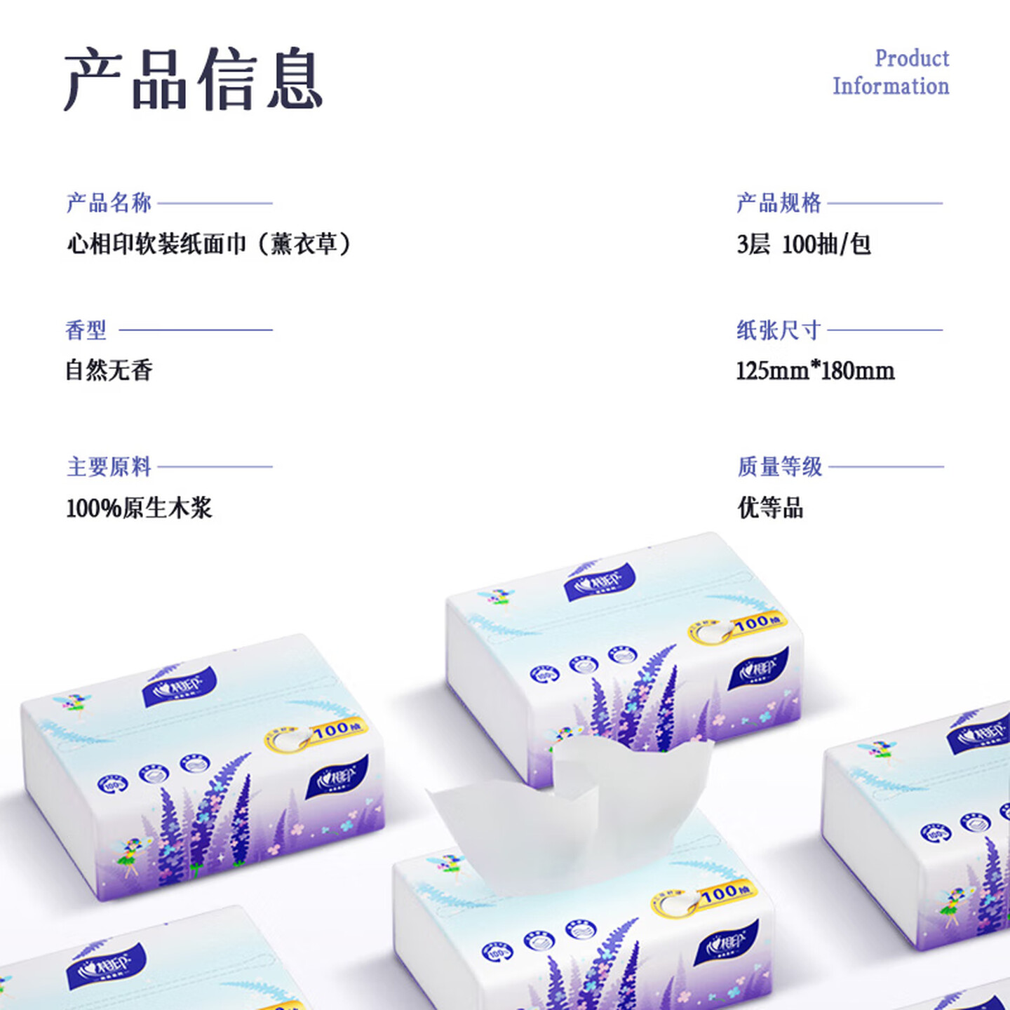 心相印抽纸纸巾薰衣草系列面巾纸3层 100抽*21包卷纸 |