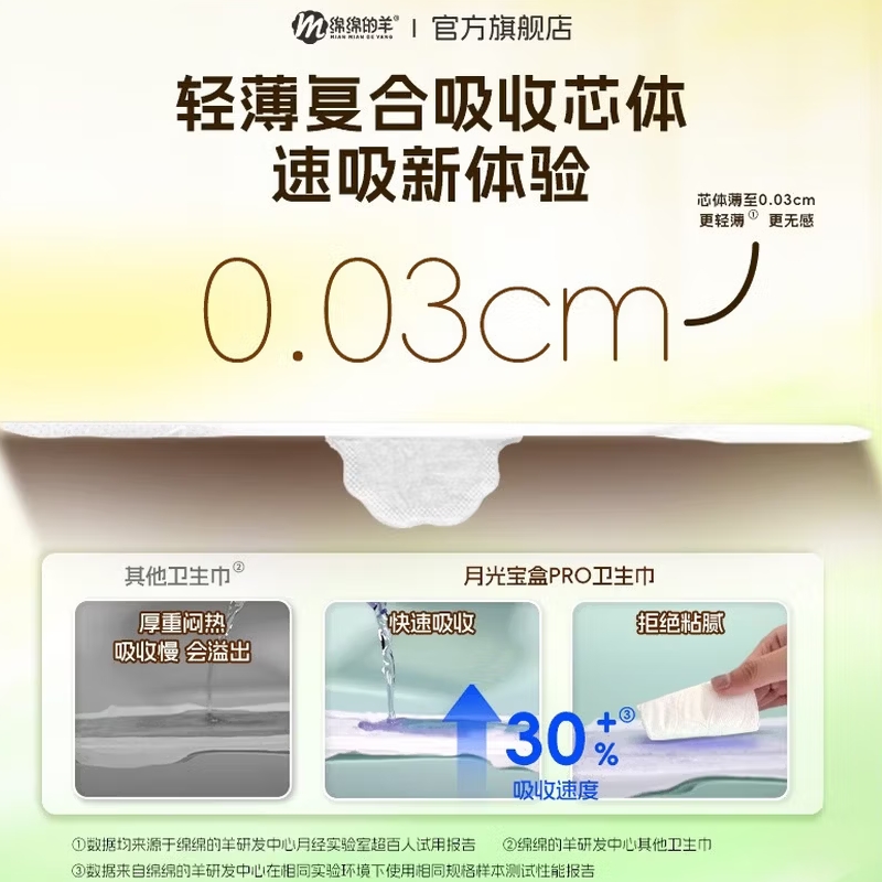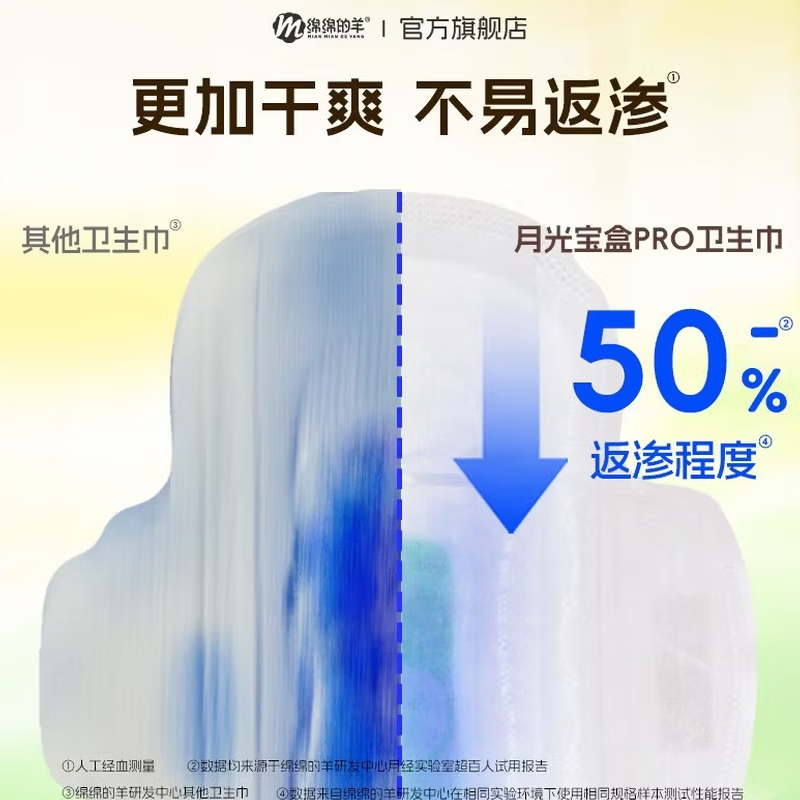 绵绵的羊月光宝盒PRO卫生巾2盒50片日夜组合 |