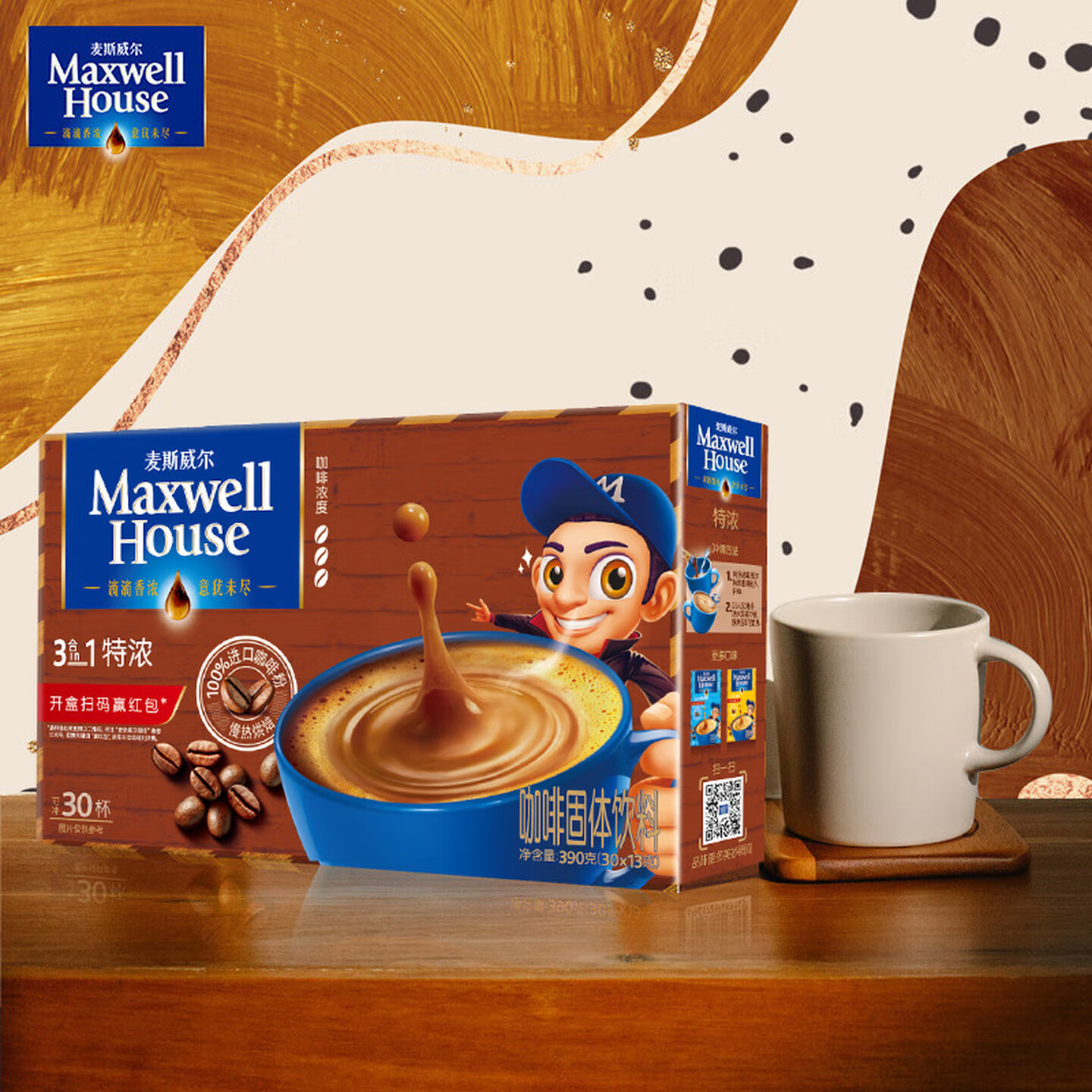 麦斯威尔(Maxwell House)特浓速溶咖啡粉13g*30条 三合一冲饮 |