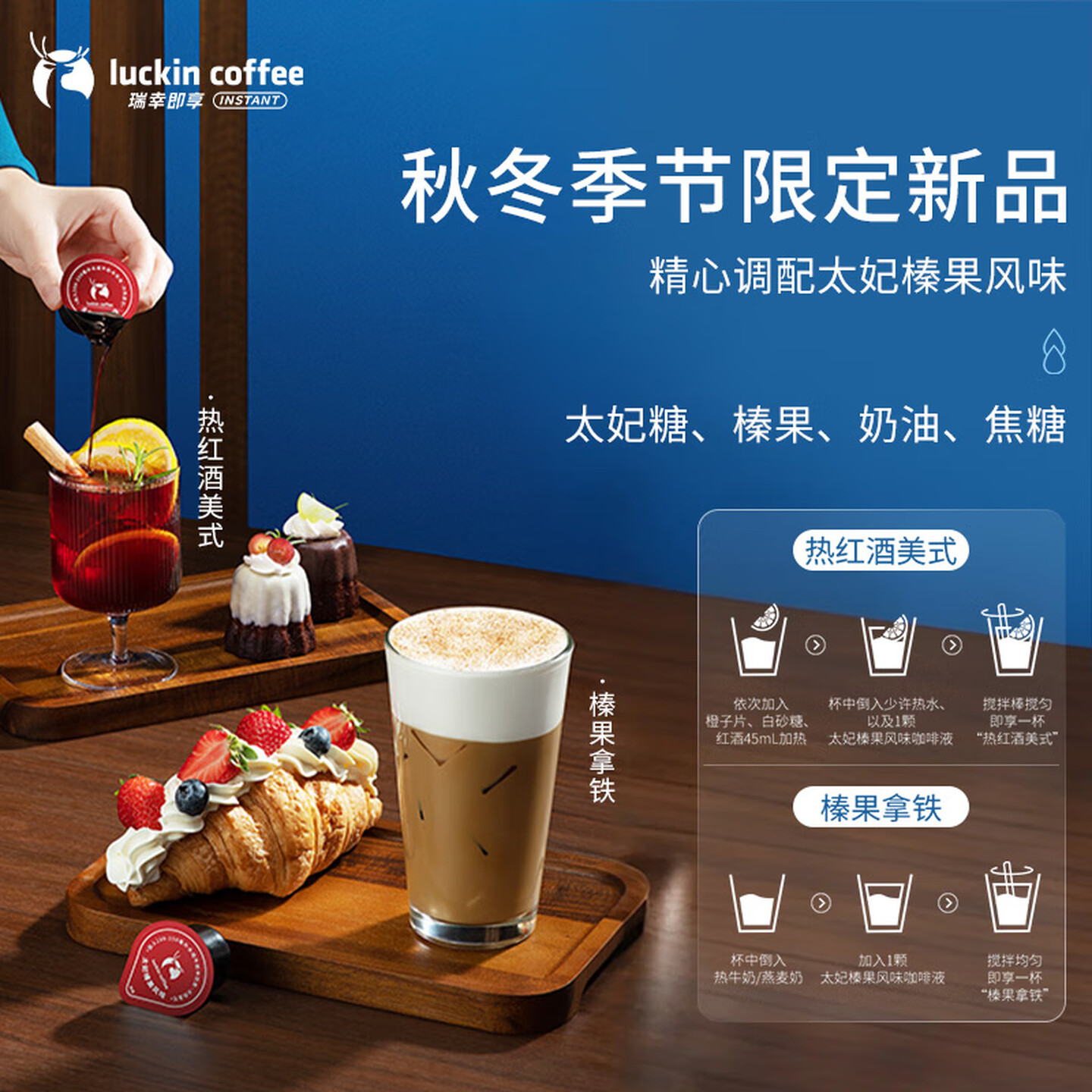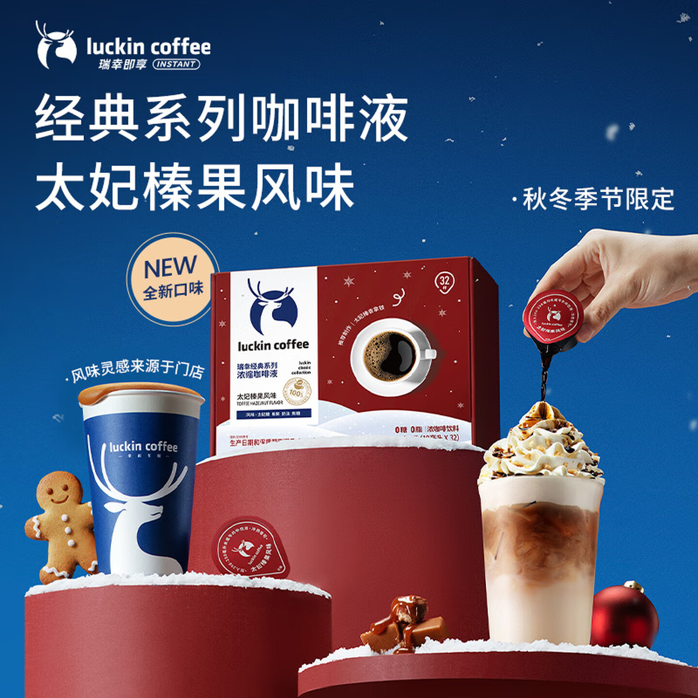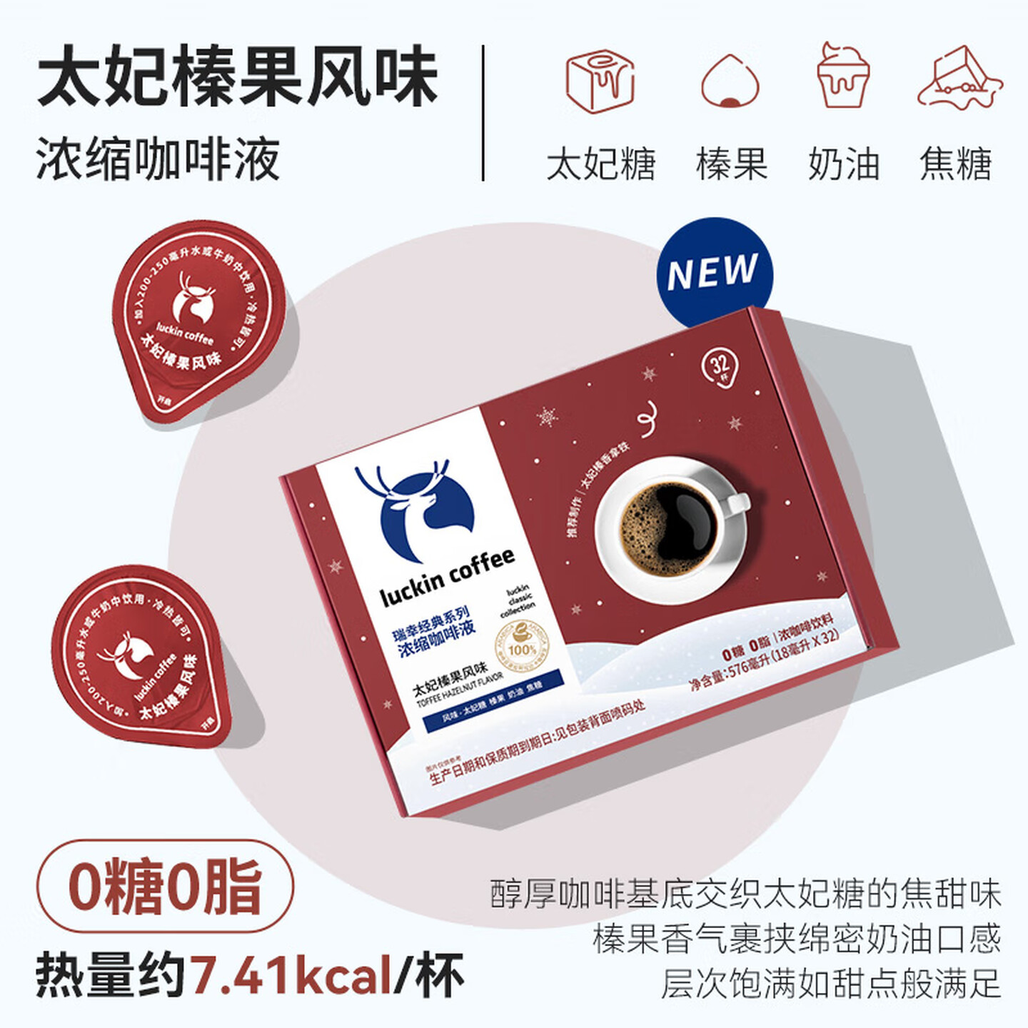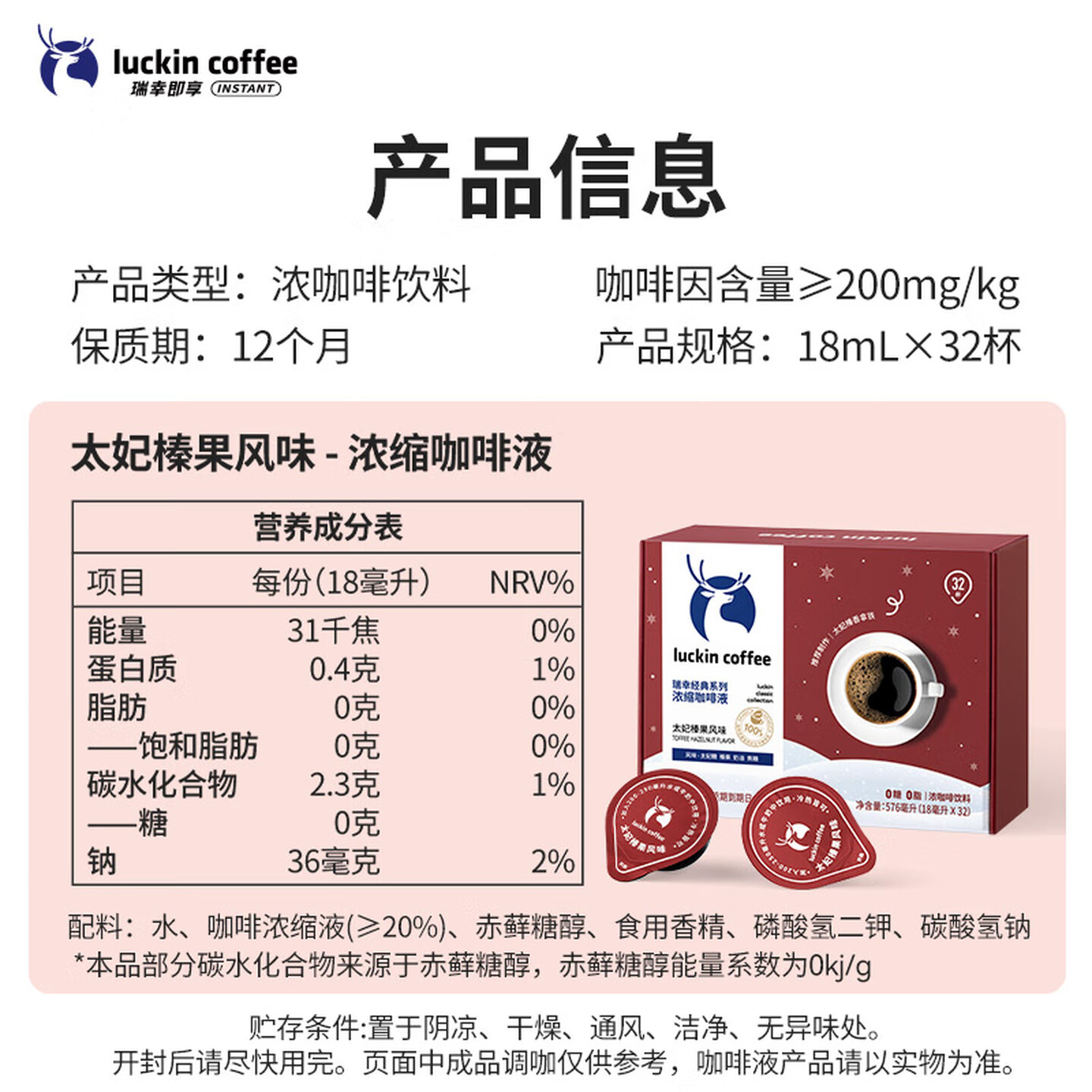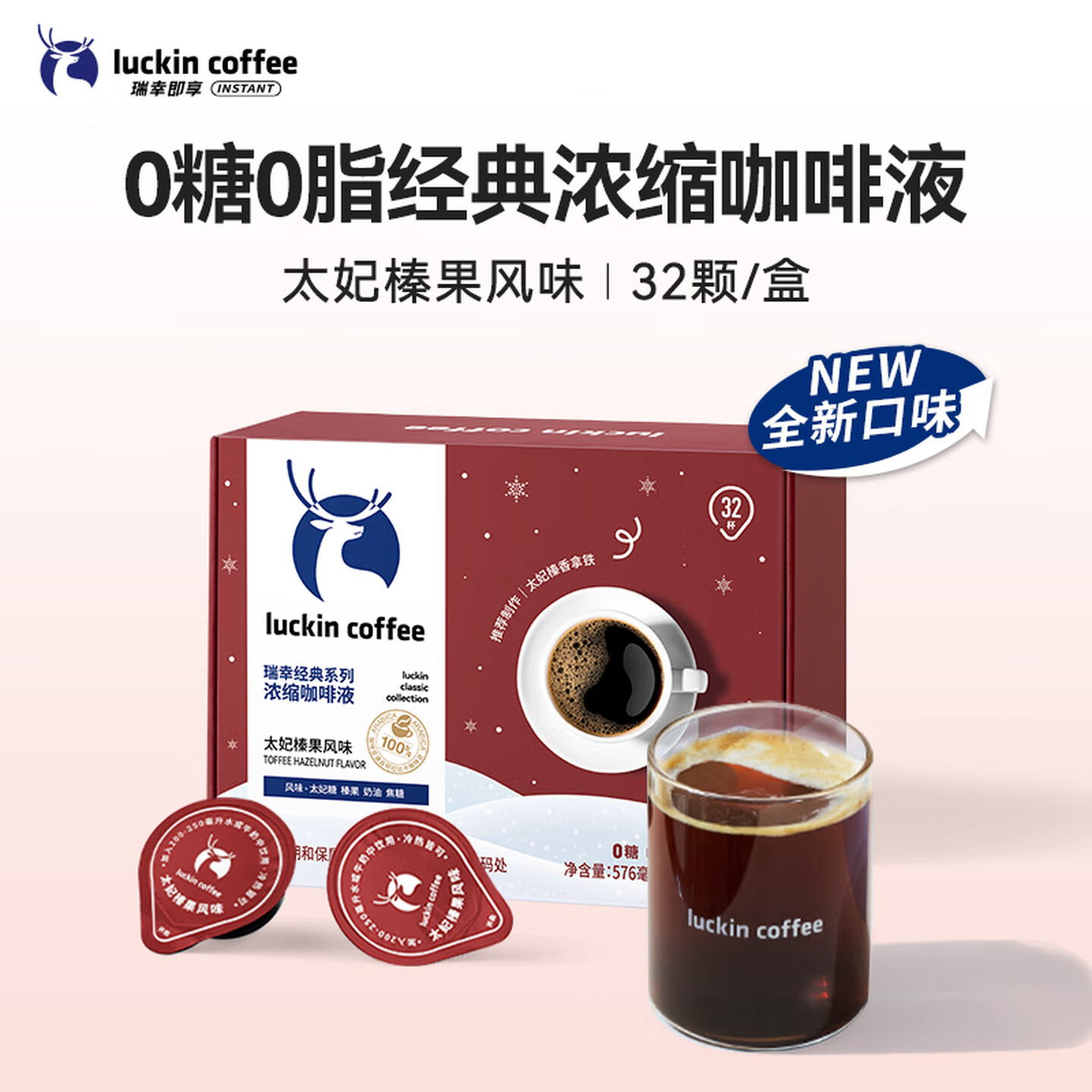 瑞幸咖啡经典浓缩咖啡液太妃榛果风味18mL*32颗/盒0糖0脂 |