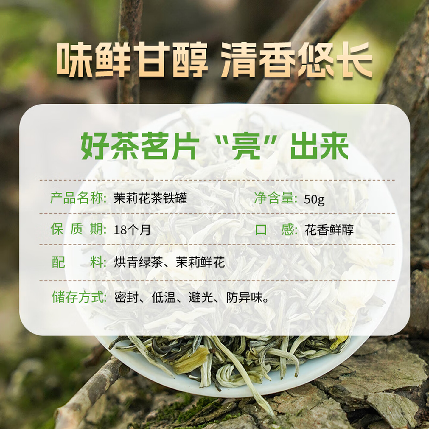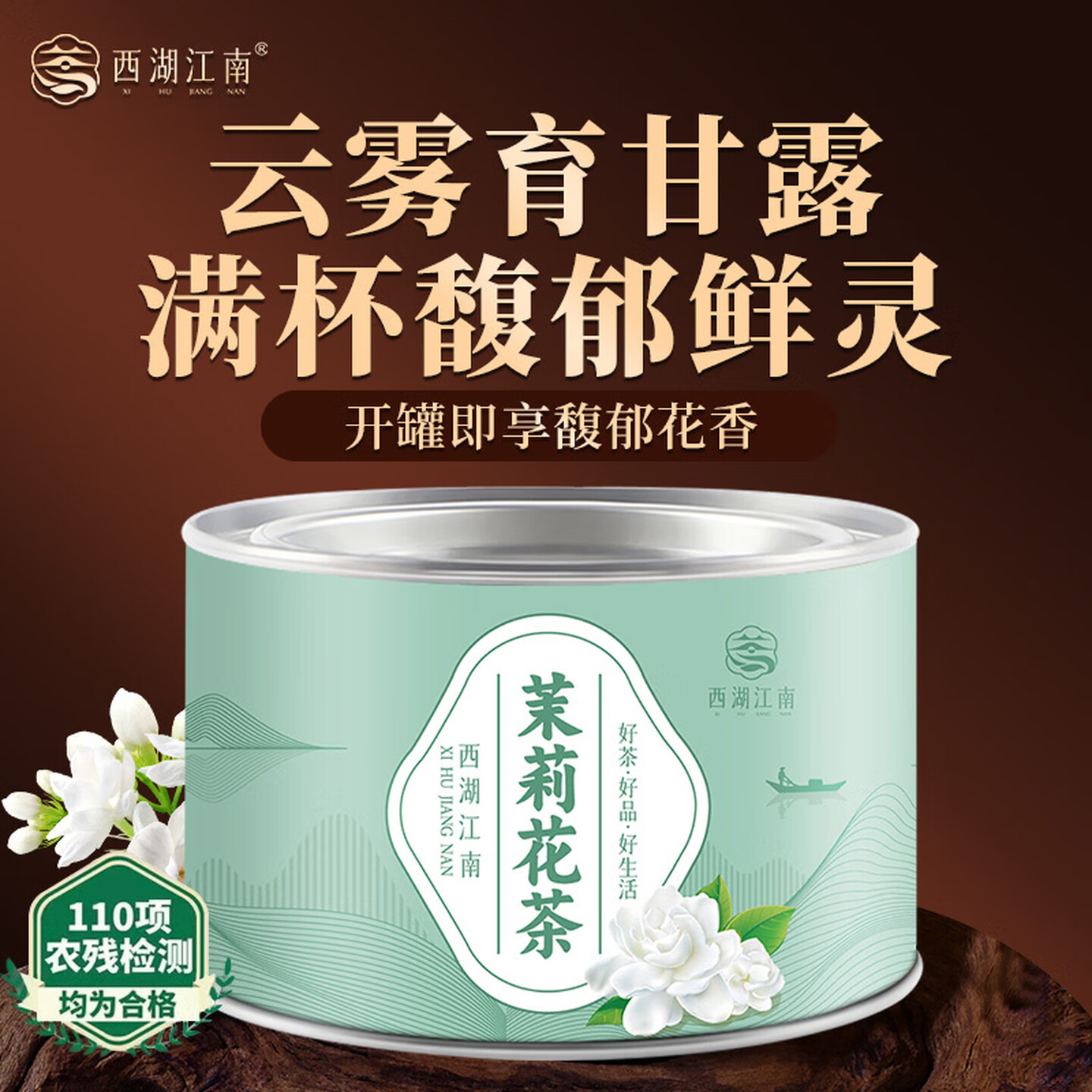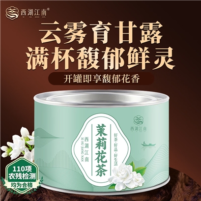 西湖江南茶叶茉莉花草茶浓香型小罐装50g |