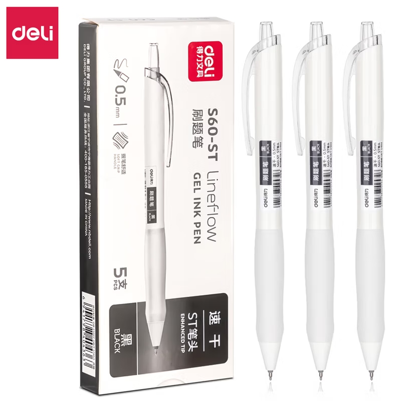 得力按动黑色0.5mm中性笔5支+10芯 |