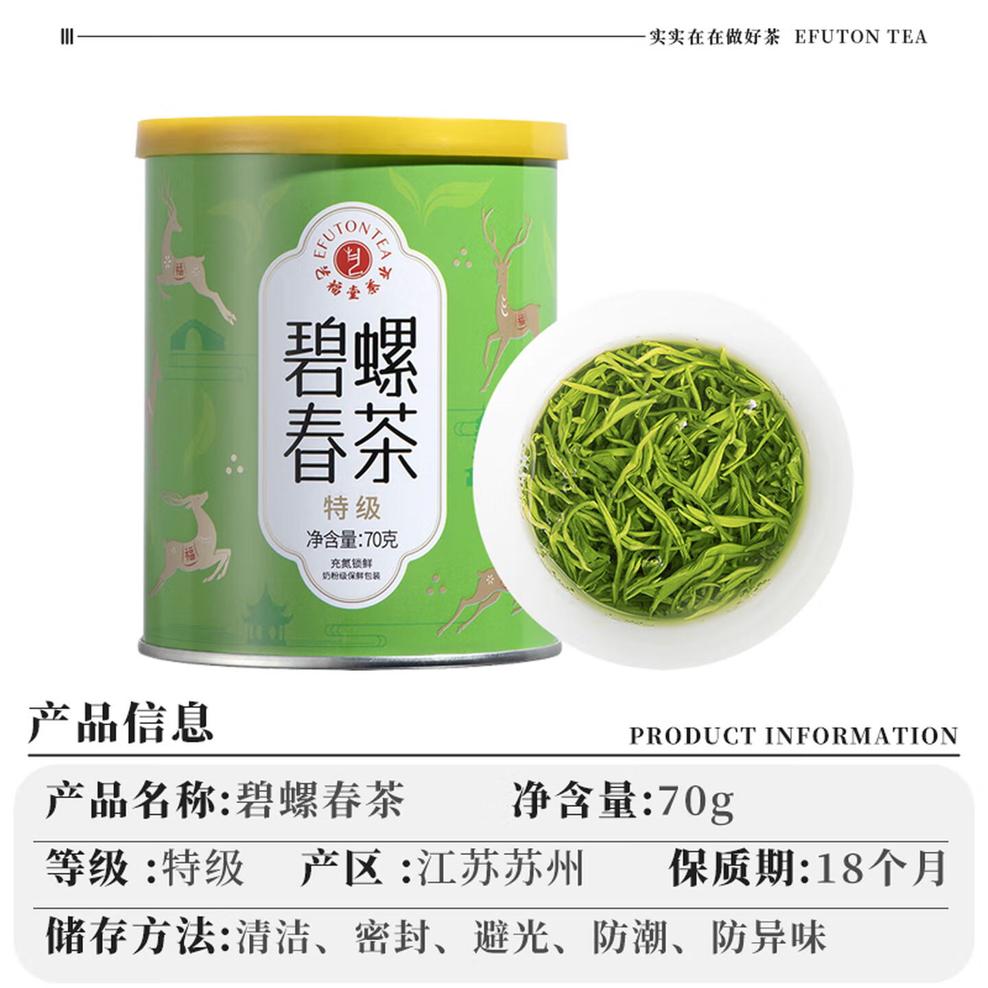 艺福堂绿茶 江苏原产碧螺春特级精选70g |