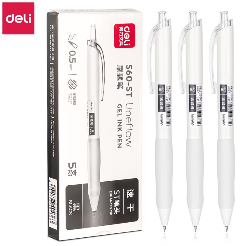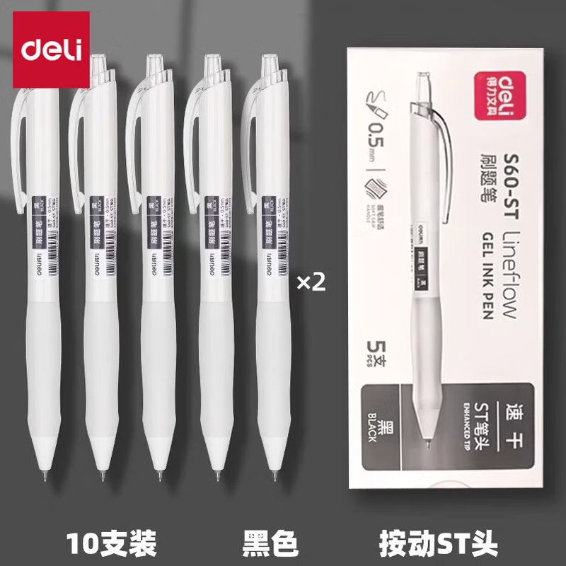 得力按动黑色0.5mm中性笔5支 |