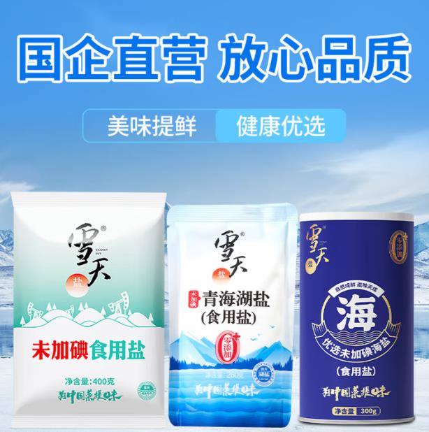 雪天【无碘】食盐套装青海湖盐260g*3+精制盐400g*2+海盐*1罐 |