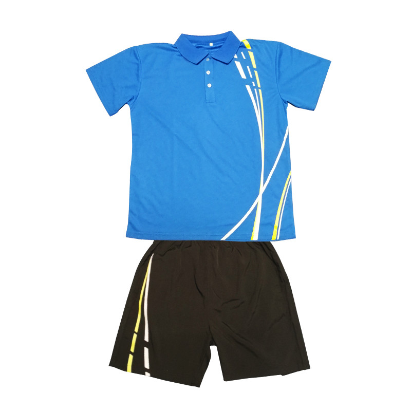休闲短袖短裤套装S码 线条蓝 |